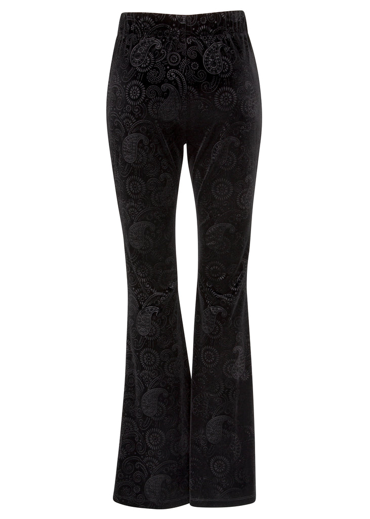 Retro-Feeling pur! Diese tolle Schlaghose aus softem schwarzem Samtstoff mit einem wunderschönen Ton-in-Ton Paisley Muster, hat das Potenzial zum absoluten Lieblingsstück.