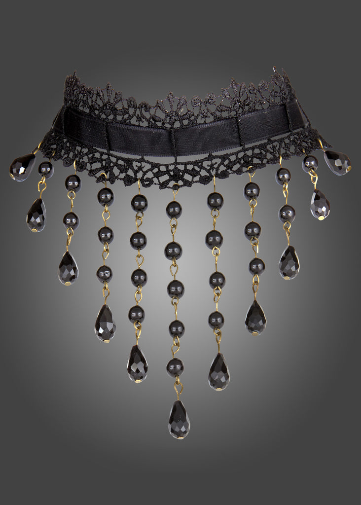 Viktorianische Perlen Kette aus schwarzer Spitze und Samt