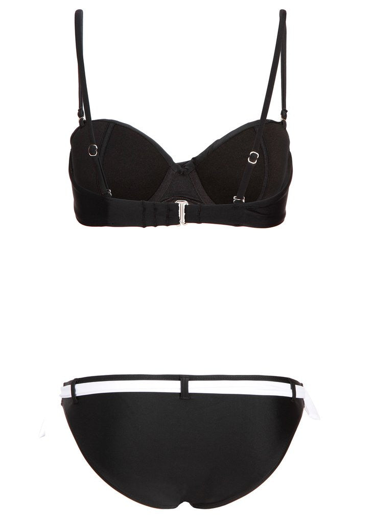 Der Sprung ins kühle Nass macht mit diesem wunderschönen Bikini noch doppelt so viel Spaß! Der Bikini ist ein toller Eyecatcher - egal ob am Strand, Pool, im Freibad oder am Badesee. Die schwarze Hose dieses hübschen Bikinis hat einen weißen (abnehmbaren) Gürtel. Das schwarze Bikini Oberteil macht mit deinen weißen Akzenten das Ensemble perfekt und ist leicht gepolstert.