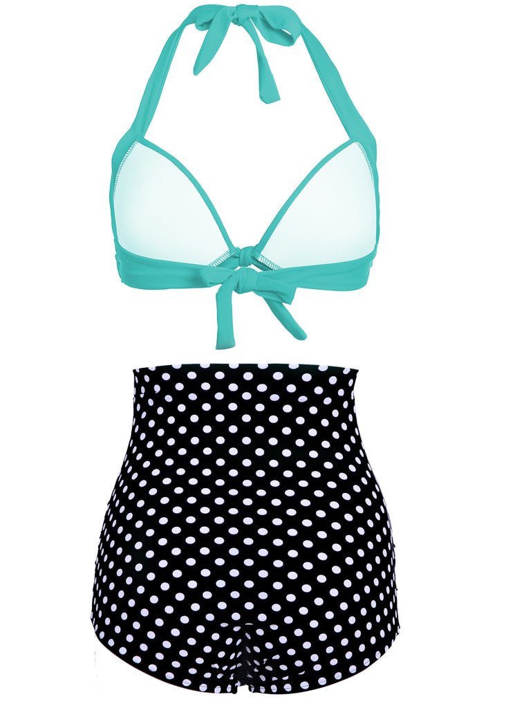 Retro PinUp Pünktchen Bikini mit hoher Taille und türkisem Oberteil (2-tlg. Set)