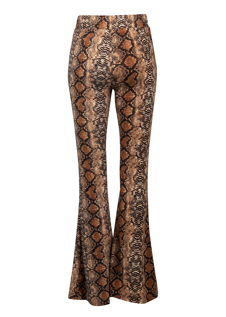 Zeigen Sie sich von Ihrer wilden Seite! Aus softem Stoff in trendigem Schlangen Muster gefertigt, hat diese tolle Schlaghose das Potenzial zum absoluten Lieblingsstück. Figurbetonter Schnitt, ausgestelltes Bein - so wird jeder Look zum Hingucker. Der super bequeme Stretchstoff verliert nie seine Form und der bequeme Gummizugbund sorgt für tollen Tragekomfort.