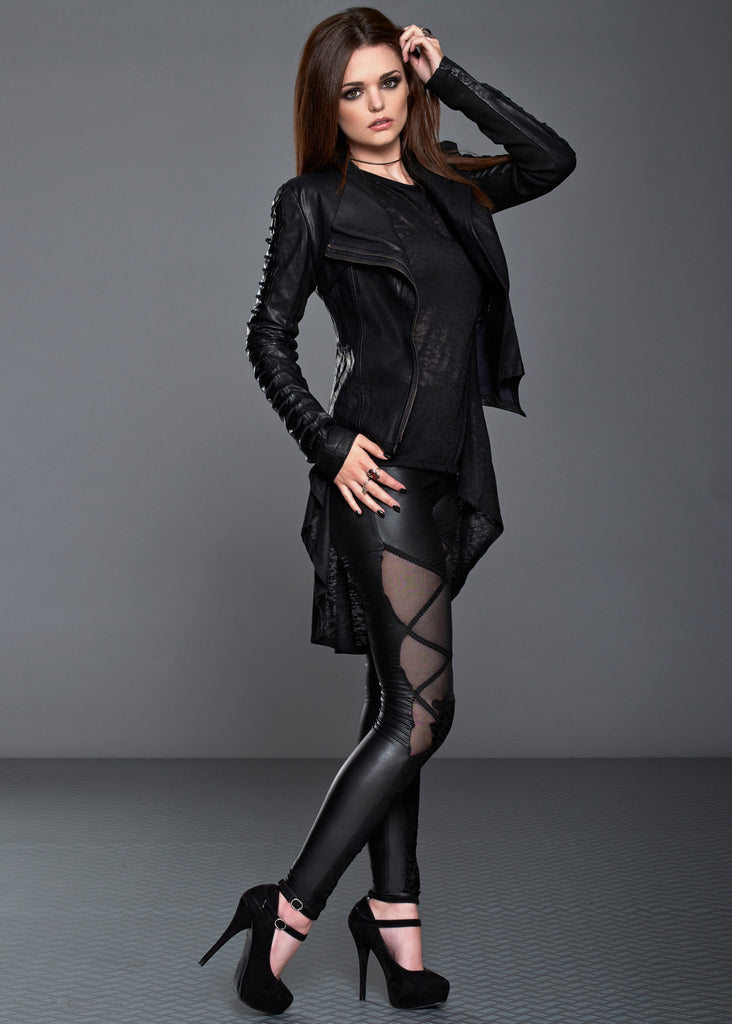 Diese wunderschöne Kunstleder Leggings von Punk Rave sorgt für einen absoulten Wow-Effekt! Durch den figurbetonten Schnitt und durch das stretchige Kunstleder sitzt sie, wie persönlich für Sie geschneidert. Tolle Details durch Spitze und Stickereien sorgen für einen ganz besonderen Look. Die Leggings ist aus 96% Polyester und 4% Spandex gefertigt und in den Größen S, M, L, XL und XXL erhältlich. Vorsicht - Verliebungs-Gefahr!